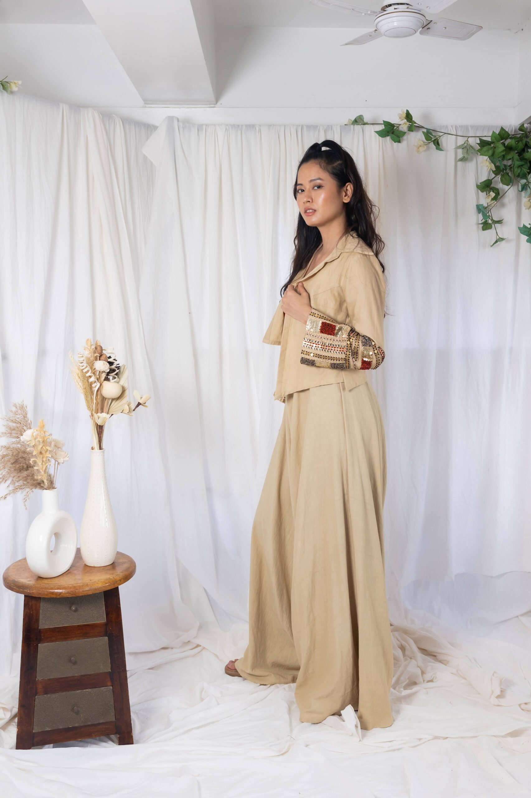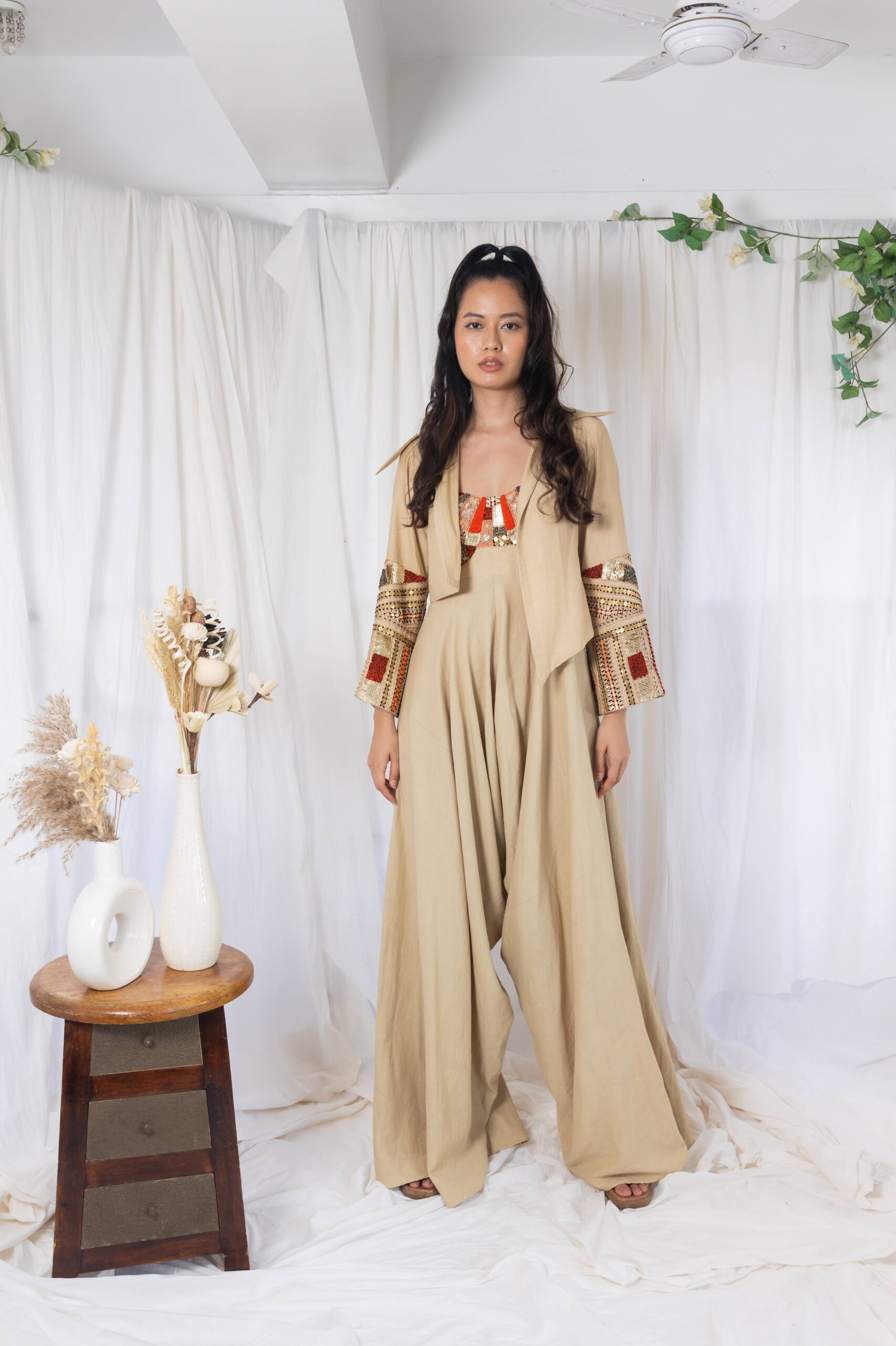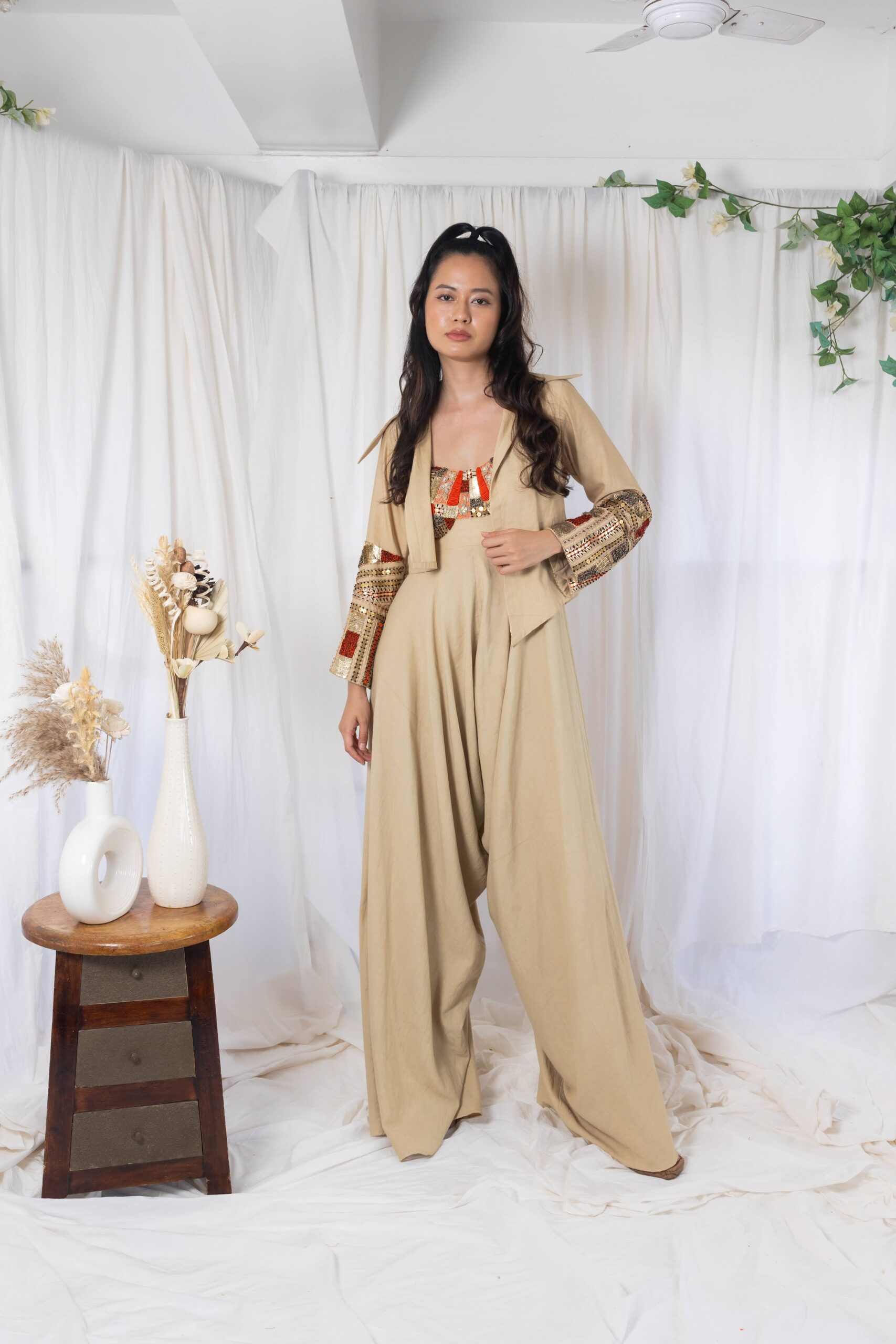 Beige jumpsuit with jacket