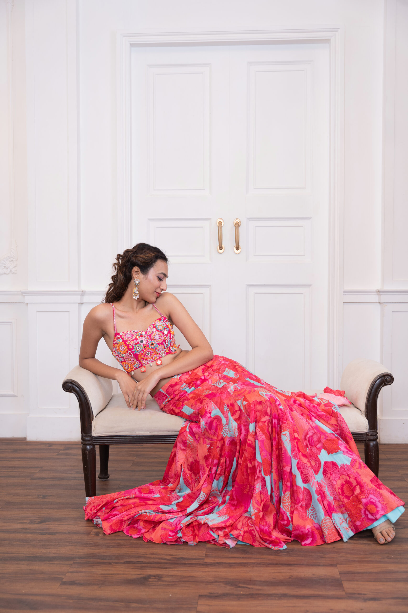 Pink and red silk checks printed pants with embroidered waistcoat has been added to your wishlist